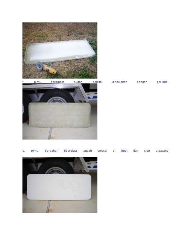 - 11. f. pintu fiberglass sudah selesai dihaluskan dengan gerinda. g. pintu berbahan fiberglass sudah selesai di buat dan siap dipasang